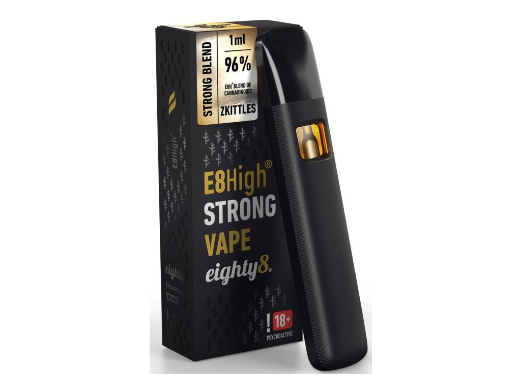 Jednorázové vaporizační pero od českého výrobce Eighty8 s objemem nádržky 1ml. POZOR.....jednorázová pouze ve smyslu nemožnosti dalšího naplnění spotřebované náplně, ale baterii je možné opakovaně libovolně nabíjet Micro USB vstupem ve spodní části e-cigarety. Nejpokročilejší metoda nahřívání založena na keramické žh. hlavě cCELL = žádná spálená chuť. Unikátní směs plně legálních a hlavně bezpečných kanabinoidů sestavena pro maximální HIGH efekt, která je legální napříč celou Evropou. Od dob, co bylo zakázáno HHC, musíme říct, že E8High je blend kanabinoidů, na který všichni čekali.