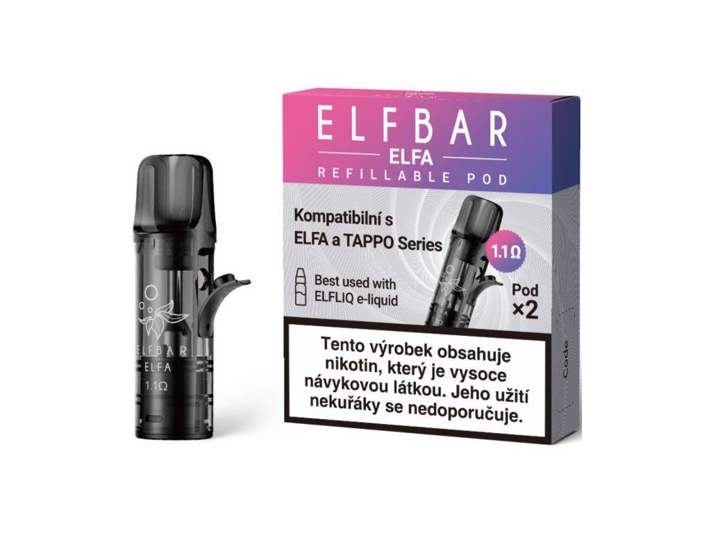 Prázdné cartridge Elf Bar ELFA o odporu 1,1ohm a objemu 2ml. Kompatibilní s e-cigaretou Elf Bar ELFA. Balení obsahuje 2ks