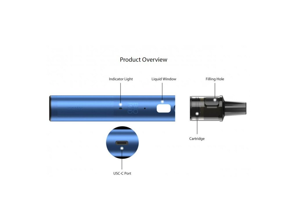 Se zbrusu novým designem, moderním nabíjecím systémem USB-C a inovativní mesh spirálkou je eGo Pod ideální volbou pro začínajícího i pokročilého vapera. Elegantní a kompaktní tělo baterie obsahuje vestavěný monočlánek o kapacitě 1000mAh s automatickým spínačem a konstantním napětím 3,7V. Vyměnitelná cartridge (POD) se žhavící hlavou o odporu 1ohm pojme až 2ml liquidu. Tato inovace je vhodná pro kouření ve stylu MTL, tedy klasického šlukování pusa-plíce.