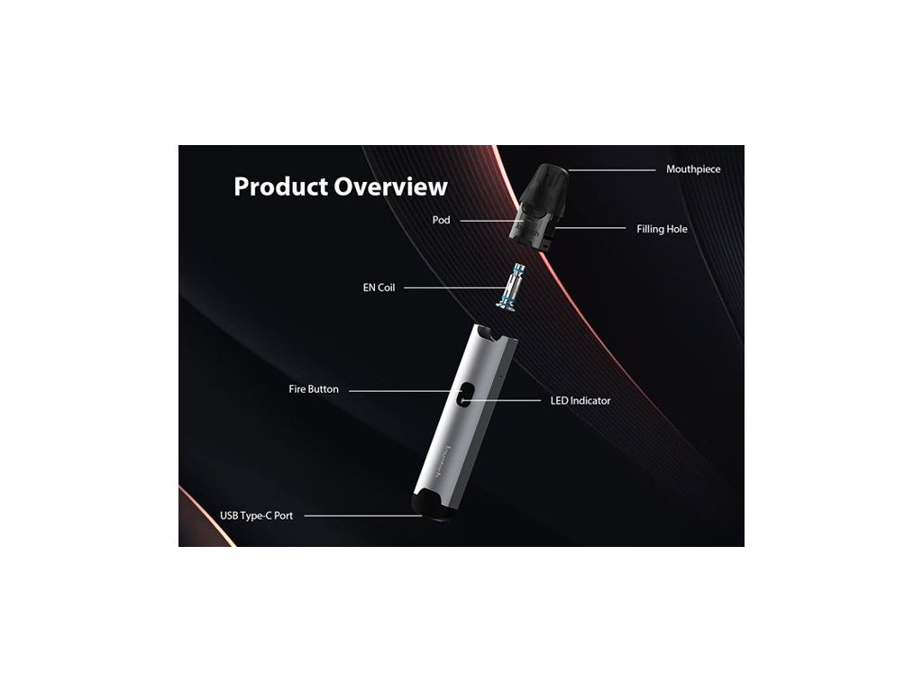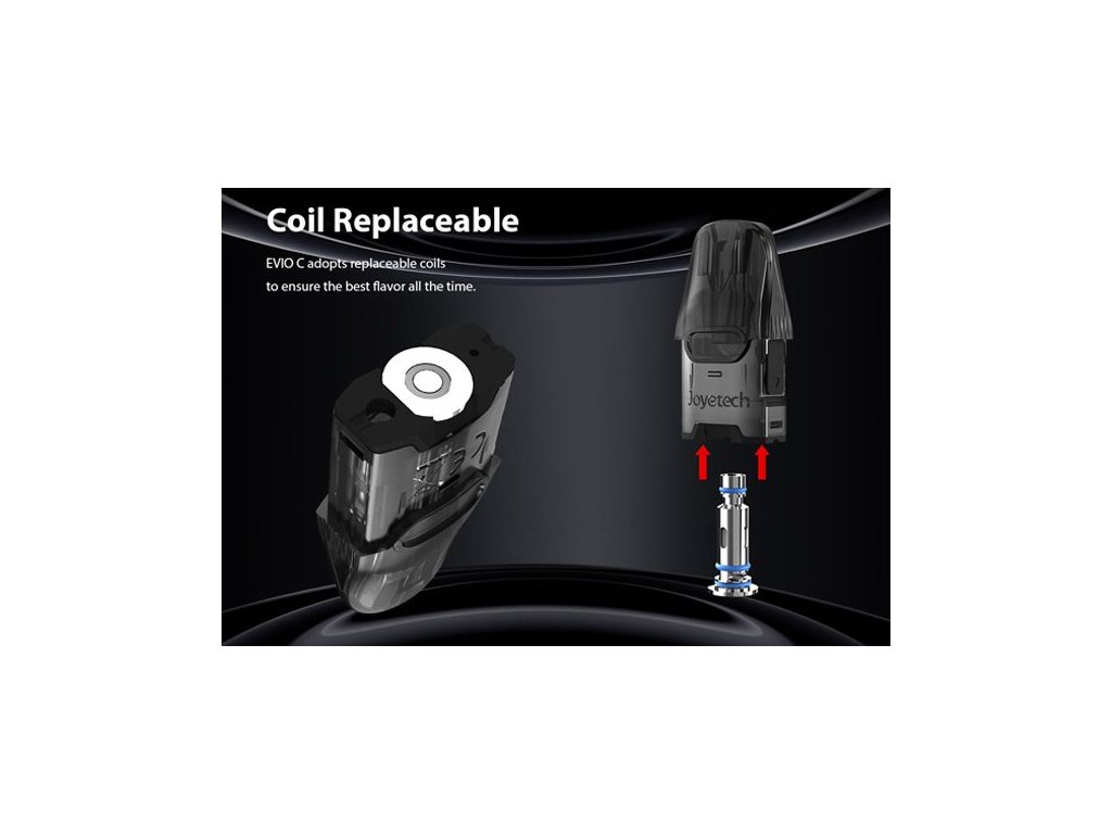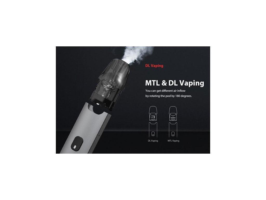 Joyetech EVIO C Pod je ultimátní elektronická cigareta s POD systémem a bezprecedentním tělem z austenitické nerezové oceli. Vestavěná baterie o kapacitě 800mAh disponuje LED indikátorem stavu nabití a USB-C portem pro rychlé nabíjení za pouhých 30min. Cartridge (POD) s pohodlným bočním plněním o objemu 2ml obsahuje vyměnitelné atomizery EN Mesh o odporu 0,8ohm (plně kompatibilní se žhavícími hlavami Uwell Caliburn G). Přívod vzduchu se nachází na boku těla baterie a dle Vašeho požadavku si můžete zvoli mezi DL a MTL stylem vapování - závisí na způsobu vložení cartridge (viz obrázek).