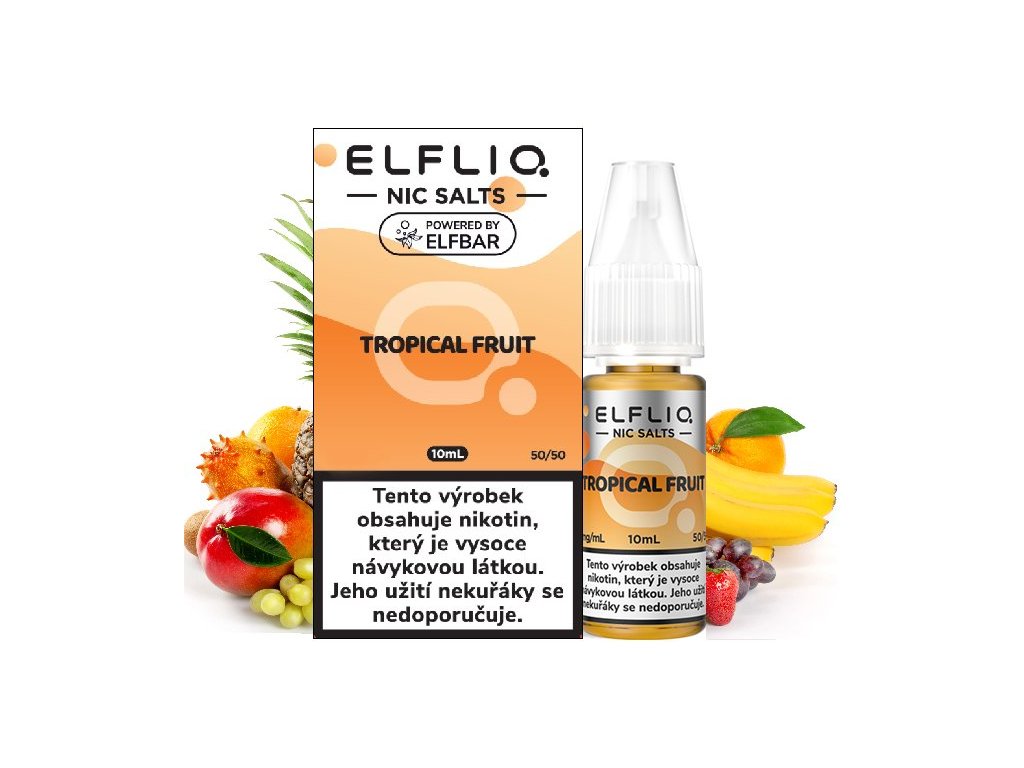 Dokonalý mix exotického ovoce... Společnost Elf Bar je ve světě vapingu opravdovým fenoménem dnešní doby. Jejich jednorázové elektronické cigarety si našly miliony příznivců po celém světě, a to díky jejich nezapomenutelné a jedinečné chuti liquidu. Nyní si pro svoje fanoušky Elf Bar přichystal i samotný liquid ELFLIQ Nic SALT, který se od běžných liquidů odlišují tím, že má nižší PH a obsahuje nikotinovou sůl, díky které dochází k rychlejší a kvalitnější vstřebatelnosti = bez dráždivého pocitu v krku oproti klasickým liquidům. Vyvážený poměr 50VG/50PG je vhodný do všech typů elektronických cigaret.