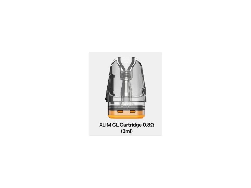 Cartridge Xlim CL s vrchním plněním, objemem 3ml a skvělým podáním chuti. Cartridge mají stejné boční plnění jako V3, ale navíc je do plnícího otvoru implementovaná dětská pojistka proti nechtěnému vytečení náplně z cartridge. Kompatibilní se serií Xlim. Balení obsahuje 3ks