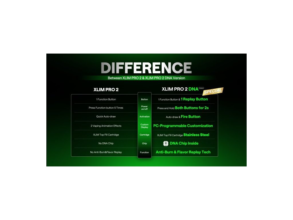 Prémiový pod systém OXVA XLIM PRO 2 DNA je postavený na pokročilém čipu EVOLV DNA, který je v komunitě pokročilých vaperů považován za technologický standard v oblasti přesnosti, bezpečnosti a uživatelské kontroly. Tento čip je vybaven technologií Replay, která umožňuje „zapamatovat si“ ideální potah a následně ho přesně opakovat – čímž zajišťuje konzistentní chuť při každém použití. Zároveň obsahuje systém ochrany proti dry hitu – čip analyzuje stav spirálky až 30 000 krát za sekundu a včas upraví výkon tak, aby nedošlo k připálení vaty ani při nízké hladině e-liquidu. Výsledkem je nejen lepší chuťový zážitek, ale i delší životnost cartridge. Tělo zařízení z luxusního kovaného karbonu a zinkové slitiny nejen skvěle vypadá, ale také vydrží každodenní používání. Baterie s kapacitou 1300mAh podporuje výstupní výkon až 30W a ve spojení s rychlým nabíjením přes USB‑C (5V/2A) je ideální pro celodenní provoz bez zbytečných prostojů. Vapování je maximálně přizpůsobitelné – zařízení nabízí automatické i tlačítkové spouštění, boční regulaci airflow a k tomu 0,56″ barevný displej, na kterém máš všechny údaje přehledně zobrazené. Pokročilejší uživatelé navíc ocení možnost plného přizpůsobení výkonových křivek a parametrů přes Evolv Escribe software na PC.