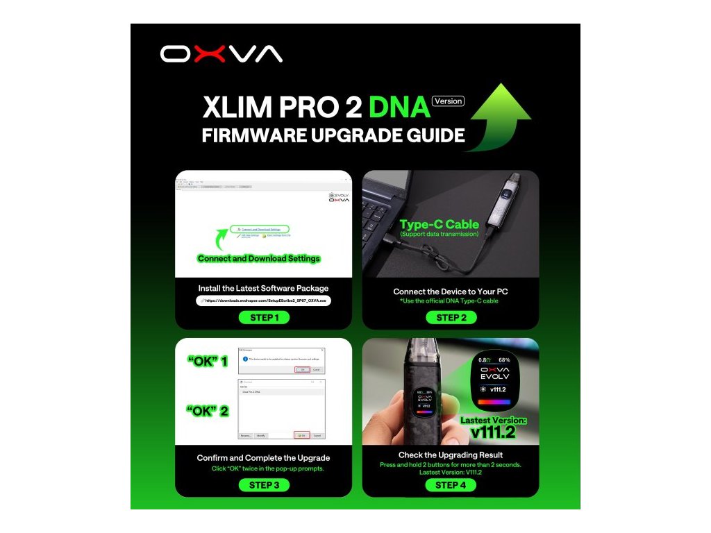 Prémiový pod systém OXVA XLIM PRO 2 DNA je postavený na pokročilém čipu EVOLV DNA, který je v komunitě pokročilých vaperů považován za technologický standard v oblasti přesnosti, bezpečnosti a uživatelské kontroly. Tento čip je vybaven technologií Replay, která umožňuje „zapamatovat si“ ideální potah a následně ho přesně opakovat – čímž zajišťuje konzistentní chuť při každém použití. Zároveň obsahuje systém ochrany proti dry hitu – čip analyzuje stav spirálky až 30 000 krát za sekundu a včas upraví výkon tak, aby nedošlo k připálení vaty ani při nízké hladině e-liquidu. Výsledkem je nejen lepší chuťový zážitek, ale i delší životnost cartridge. Tělo zařízení z luxusního kovaného karbonu a zinkové slitiny nejen skvěle vypadá, ale také vydrží každodenní používání. Baterie s kapacitou 1300mAh podporuje výstupní výkon až 30W a ve spojení s rychlým nabíjením přes USB‑C (5V/2A) je ideální pro celodenní provoz bez zbytečných prostojů. Vapování je maximálně přizpůsobitelné – zařízení nabízí automatické i tlačítkové spouštění, boční regulaci airflow a k tomu 0,56″ barevný displej, na kterém máš všechny údaje přehledně zobrazené. Pokročilejší uživatelé navíc ocení možnost plného přizpůsobení výkonových křivek a parametrů přes Evolv Escribe software na PC.