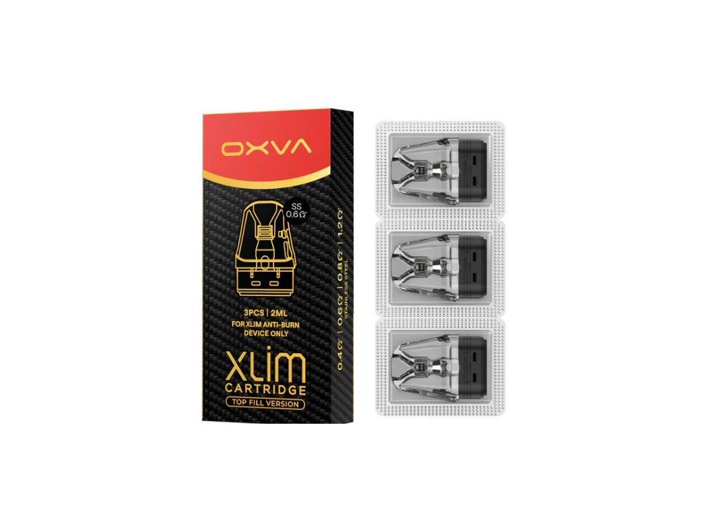 Cartridge Xlim Top Fill SS (Stainless Steel) s vrchním plněním, které pojmou až 2ml liquidu. Určené primárně pro OXVA XLIM PRO 2 DNA. Obsah balení 3ks