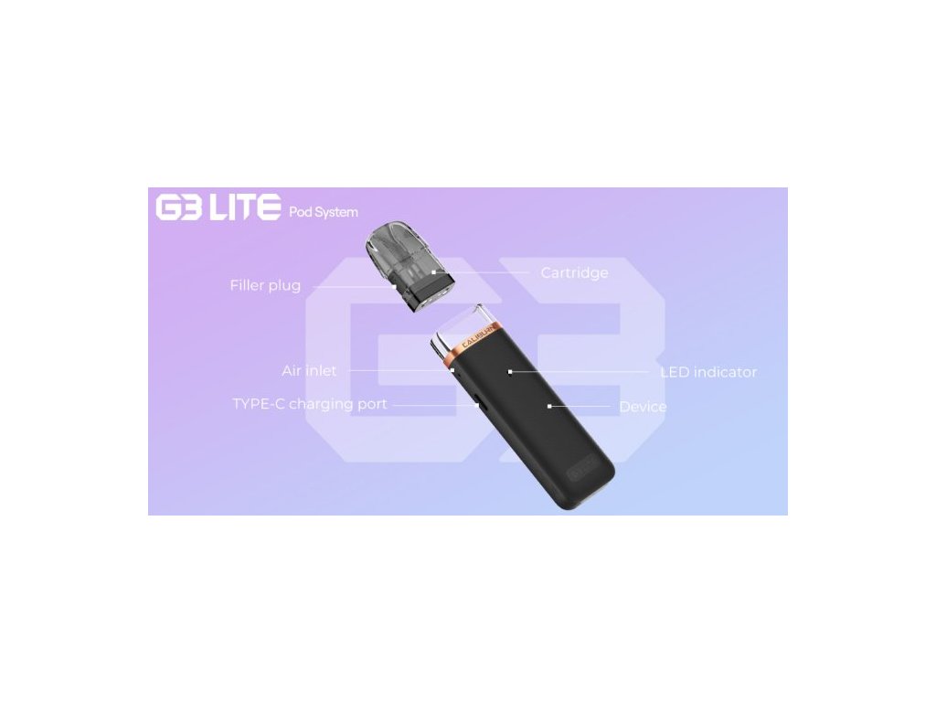Uwell Caliburn G3 Lite je nízkonákladová elektronická cigareta, která svými vlastnostmi uspokojí i náročnější uživatele. Tělo baterie z odolného materiálu PCTG je vybaveno monočlánkem o kapacitě 1200mAh s LED indikátorem stavu nabití, automatickým výkonem až 25W a USB-C portem pro rychlé nabití. Cartridge G3 o objemu 2,5ml disponují vestavěnou cívkou o odporu 0,6ohm a 0,9ohm.