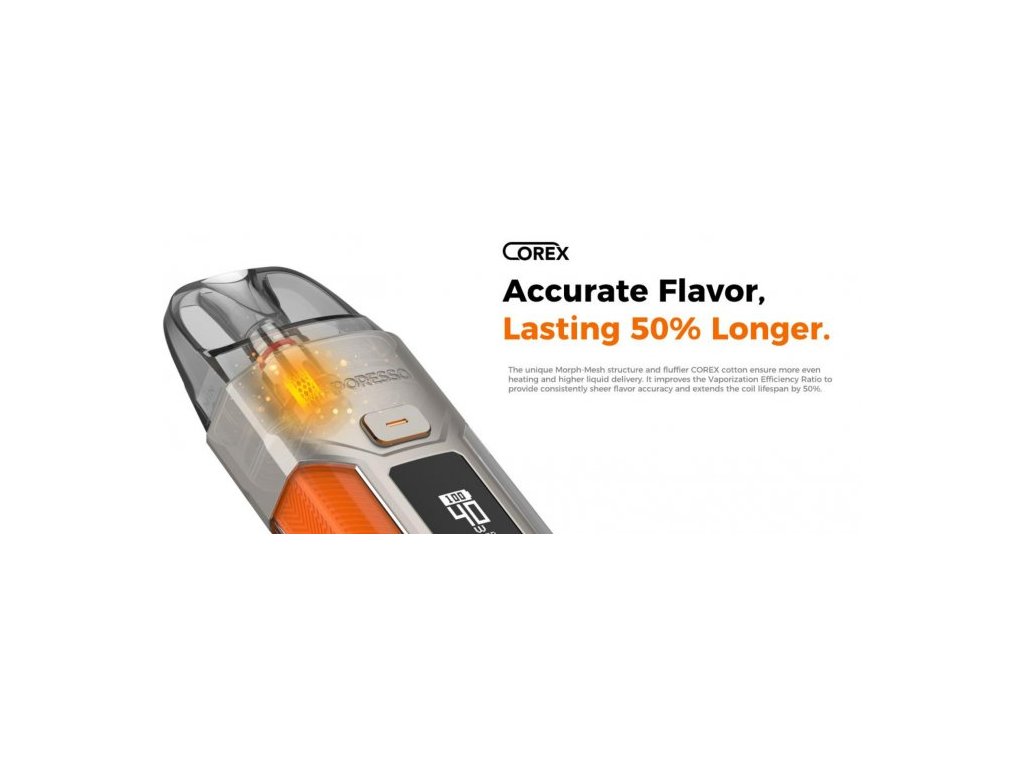 Vaporesso Luxe X Pro je elektronická cigareta s futuristickým designem a nastavitelným výkonem až 40W. Ergonomické tělo z kvalitní zinkové slitiny disponuje vestavěnou baterií o kapacitě 1500mAh s USB-C portem pro rychlé nabíjení. Na přední straně je umístěn OLED displej, který umožňuje nastavení hodnot a zobrazuje všechny potřebné informace. Tvorbu páry zajišťuje nejen spínací tlačítko, ale i systém automatického žhavení - stačí pouze potáhnout z náustku. Díky inovativní regulaci přívodu vzduchu si můžete nastavit styl vapování MTL nebo DL. Cartridge o objemu 5ml disponují vestavěnou žhavicí hlavou s technologií Morph-Mesh = čistá chuť liquidu.